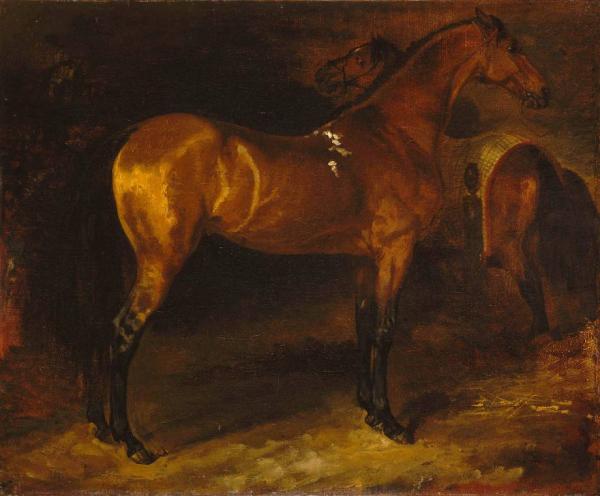 Image de l'œuvre Cheval espagnol dans une écurie réalisée par l'artiste Jean Louis Théodore Géricault. L'œuvre est exposée à Louvre (Paris, France).