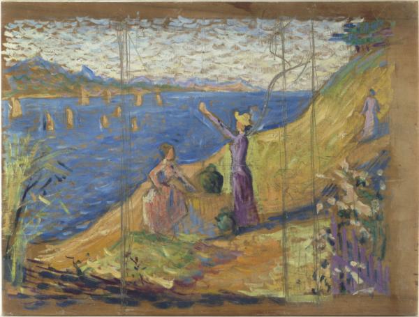 Image de l'œuvre Femmes au puits, esquisse I réalisée par l'artiste Paul Signac. L'œuvre est exposée à Musée d'Orsay (Paris, France).