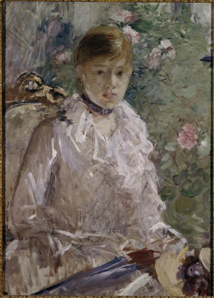 Image de l'œuvre Jeune femme assise devant une fenêtre réalisée par l'artiste Berthe Morisot. L'œuvre est exposée à Musée d'Orsay (Paris, France).