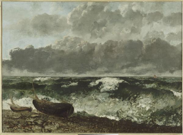 Image de l'œuvre La mer orageuse, dit aussi la vague réalisée par l'artiste Gustave Courbet. L'œuvre est exposée à Musée d'Orsay (Paris, France).