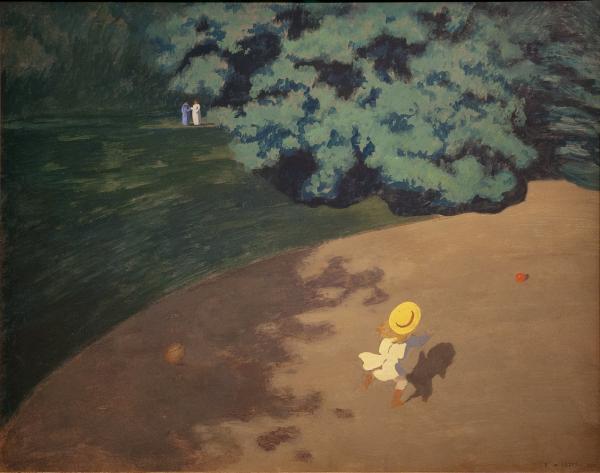 Le ballon fait partie des plus fameux tableaux de Félix Vallotton, un peintre suisse qui entretient des relations étroites avec les Nabis dès 1891. D'ailleurs, cette vue plongeante est observée dans un parc ou un jardin public, espaces souvent représentés par Bonnard ou Vuillard..."