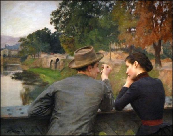 "Les amoureux (Soir d'automne)" est une belle peinture romantique qui capture l'essence de l'amour et de l'automne. C'est un témoignage du talent d'Emile Friant et de sa capacité à transmettre la profondeur des émotions humaines à travers son art.