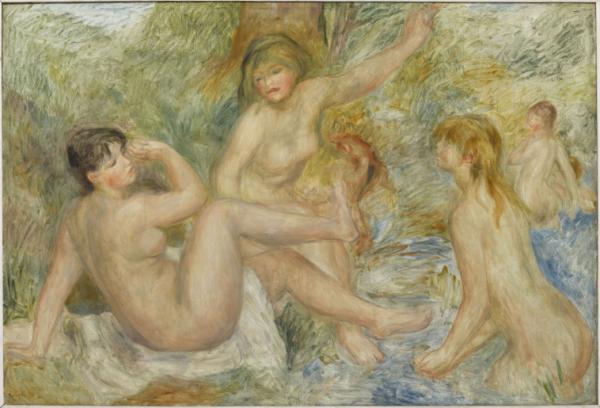 Peu avant sa mort, en 1919, il achève l’une de ses dernières grandes œuvres, “Les Grandes Baigneuses”, une composition ambitieuse inspirée des maîtres de la Renaissance comme Rubens et des grands peintres vénitiens.