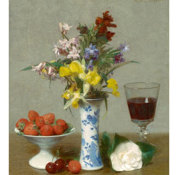 Fantin-Latour ne cède jamais à la facilité et peint ses natures mortes aux fleurs avec autant d’exigence que le reste de son œuvre. Il renouvèle son motif pour chacune des cent soixante compositions florales qui font de lui un des peintres les plus prolixes et les plus réputés dans ce domaine.