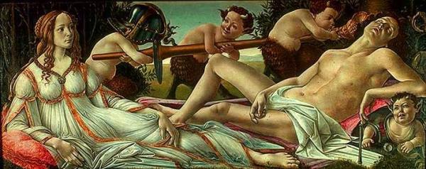 'Vénus et Mars' peint en 1483, sur le thème de l'amour semble avoir été commandé par la famille Vespucci à l'occasion d'un mariage.